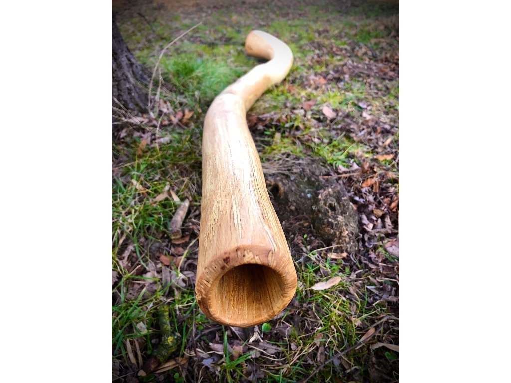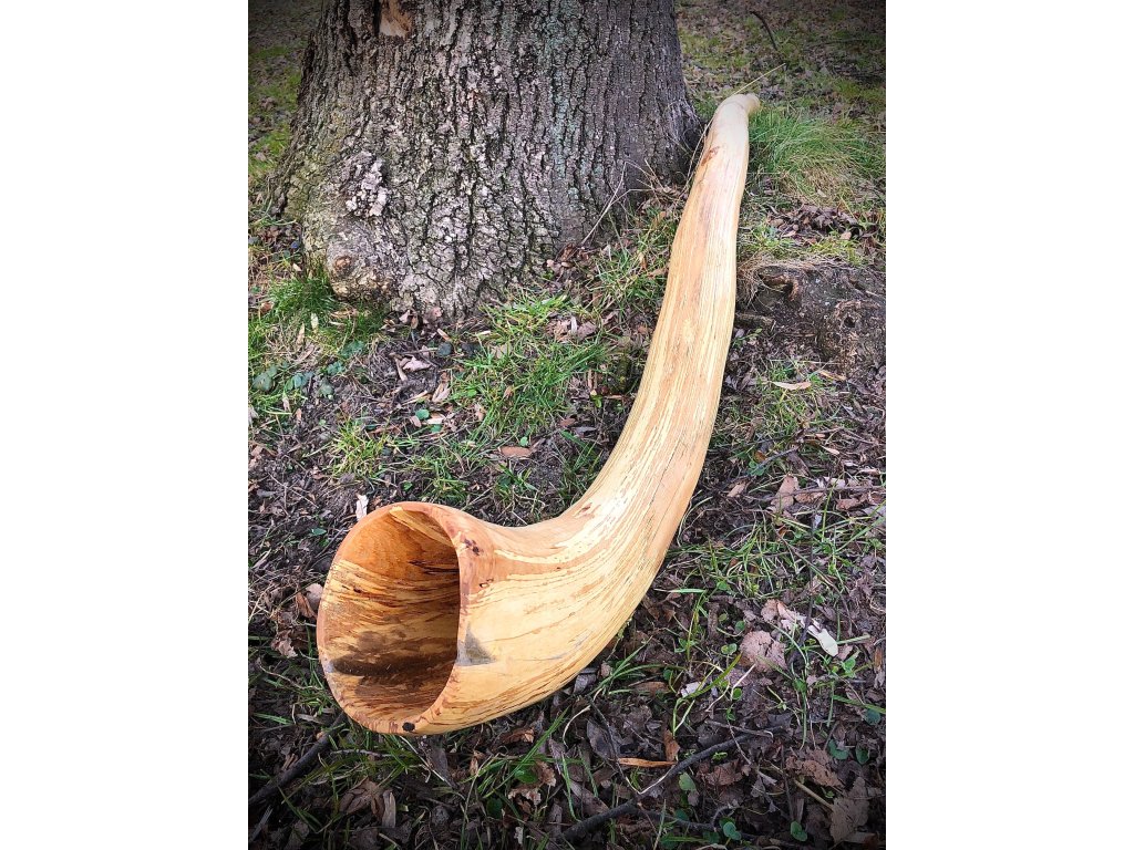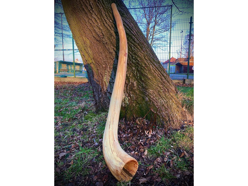 Rozměry 1670 x 110 x 50 mm, vnitřní průměr náustku 31 mm, povrchová úprava olej. Didgeridoo z habru ve tvaru fajfky. Pochází z Beskyd, okolí Horní Bečvy.